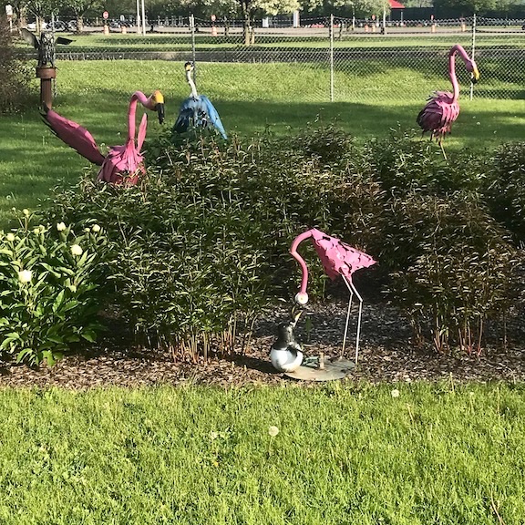Entering Cortland in late May or early June is particularly delightful with this sculpture peony garden to savor.