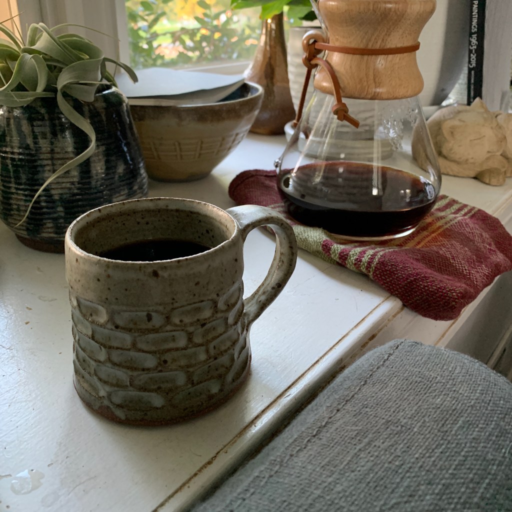 Or perhaps a picture of my son’s first coffee of the day in his handsome handmade mug that he pulled out of the kiln the night before at pottery class.