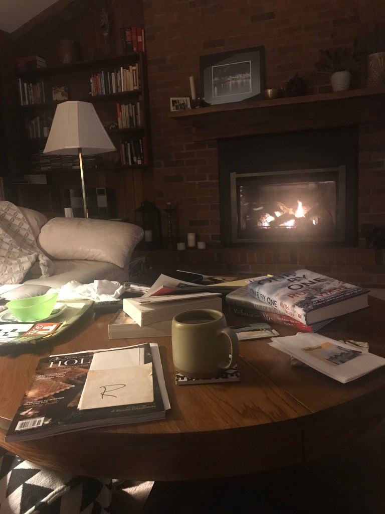 We started our day sitting in front of the fire with our coffee.  It’s a wonderful luxury on a damp, dreary morning to be able to push a button and have a roaring fire.
